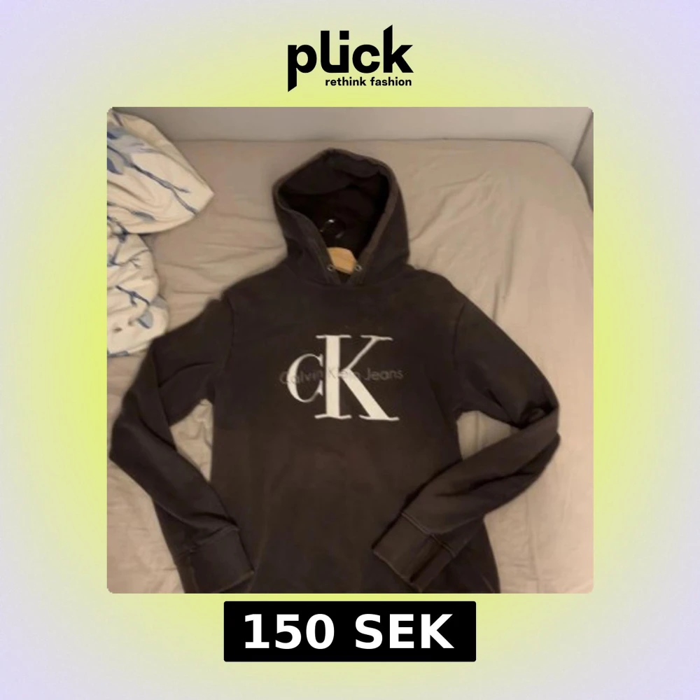 Säljer en svart hoodie från Calvin Klein Jeans med stor vit CK-logga på bröstet. Tröjan har huva och långa ärmar, perfekt för en avslappnad och stilren look. Passar dig som gillar klassiska märken och enkel design.