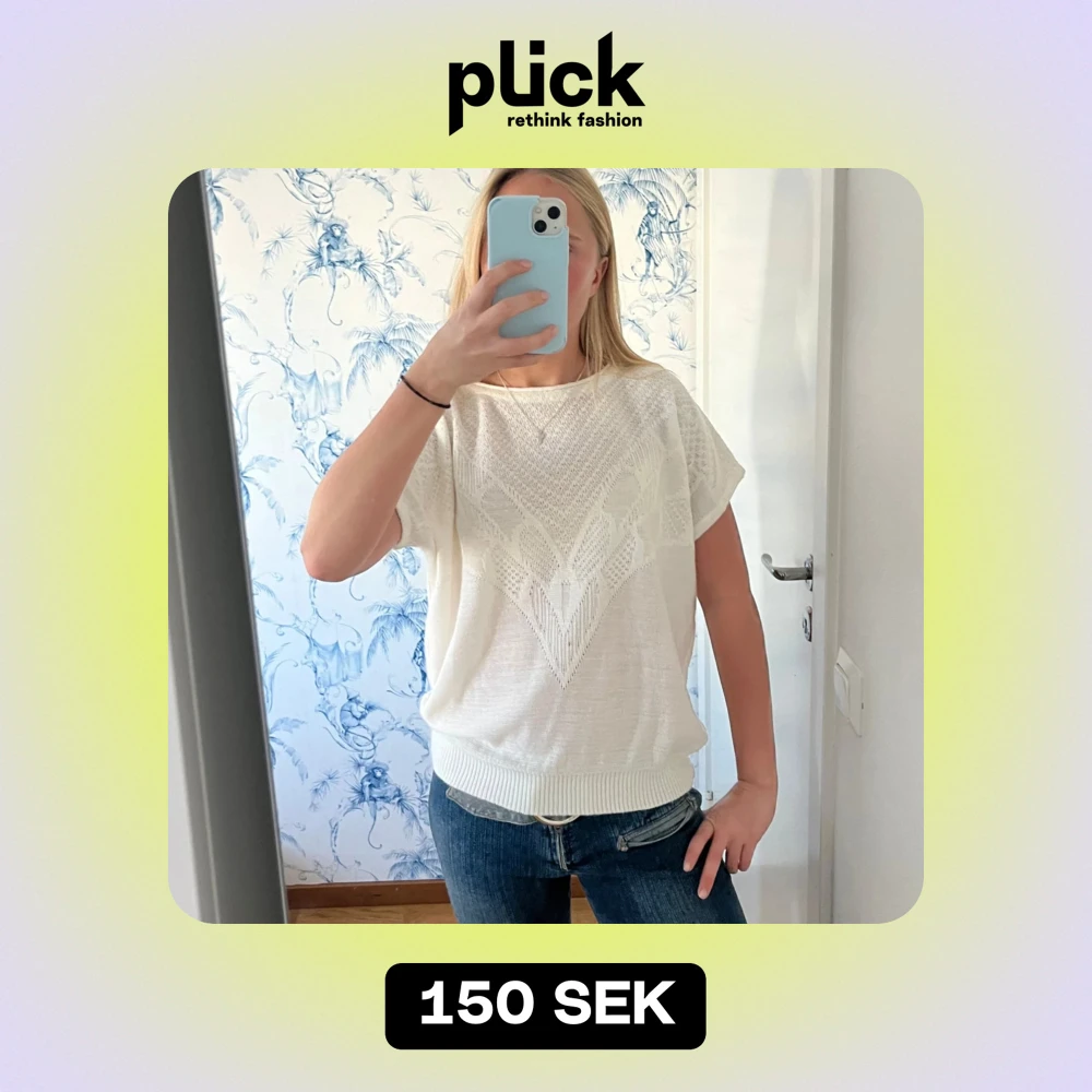 Säljer en superfin vit stickad topp med ett snyggt mönster framtill. Perfekt till hösten!🍂