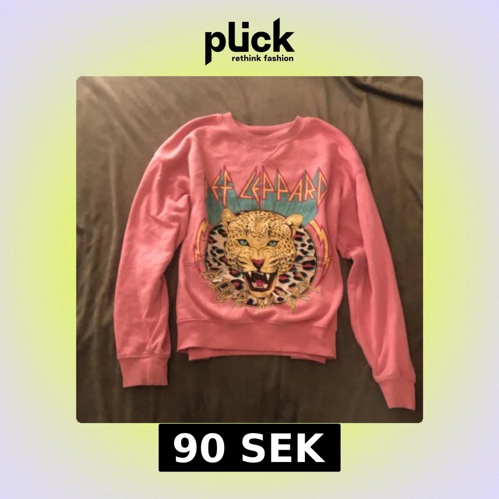 Säljer en cool rosa sweatshirt med Def Leppard-tryck. Tröjan har ett stort leopardmotiv och färgglada detaljer på framsidan. Perfekt för fans av bandet eller för en retro look. Mjuk och bekväm med ribbad krage och ärmslut🫶🏼