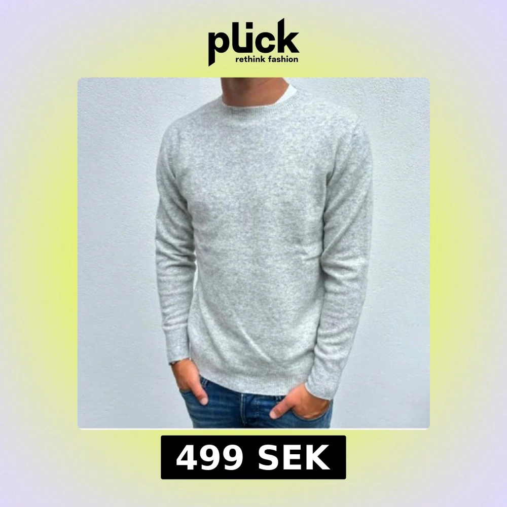 En stilren ljusgrå stickad tröja med rund hals och långa ärmar. Tröjan har en klassisk passform och ribbade muddar vid ärmslut och nederkant. Perfekt att matcha med jeans för en clean look.