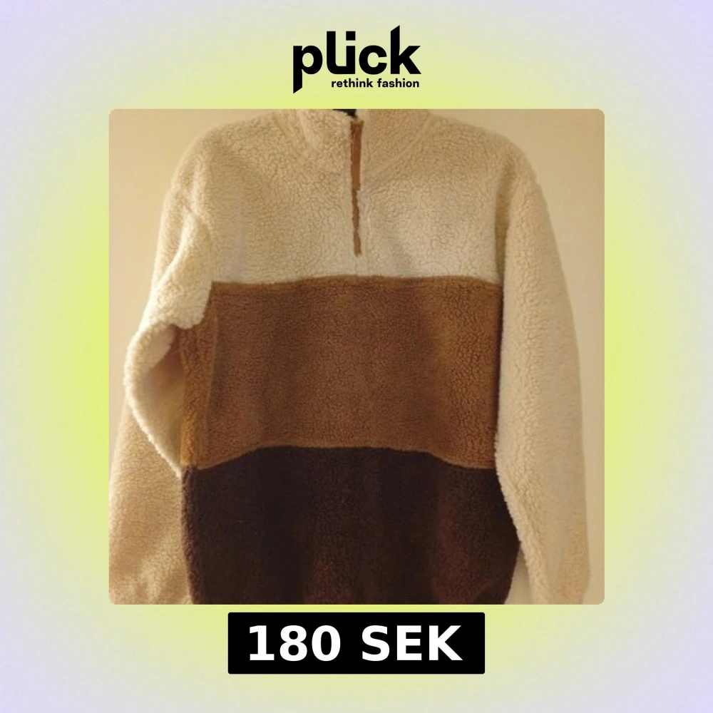 Mysig fleece-tröja från Vailent i storlek S. Tröjan har blockfärger i beige, ljusbrun och mörkbrun, samt en half zip-dragkedja framtill. Perfekt för kyliga dagar och har en riktigt skön oversized känsla.