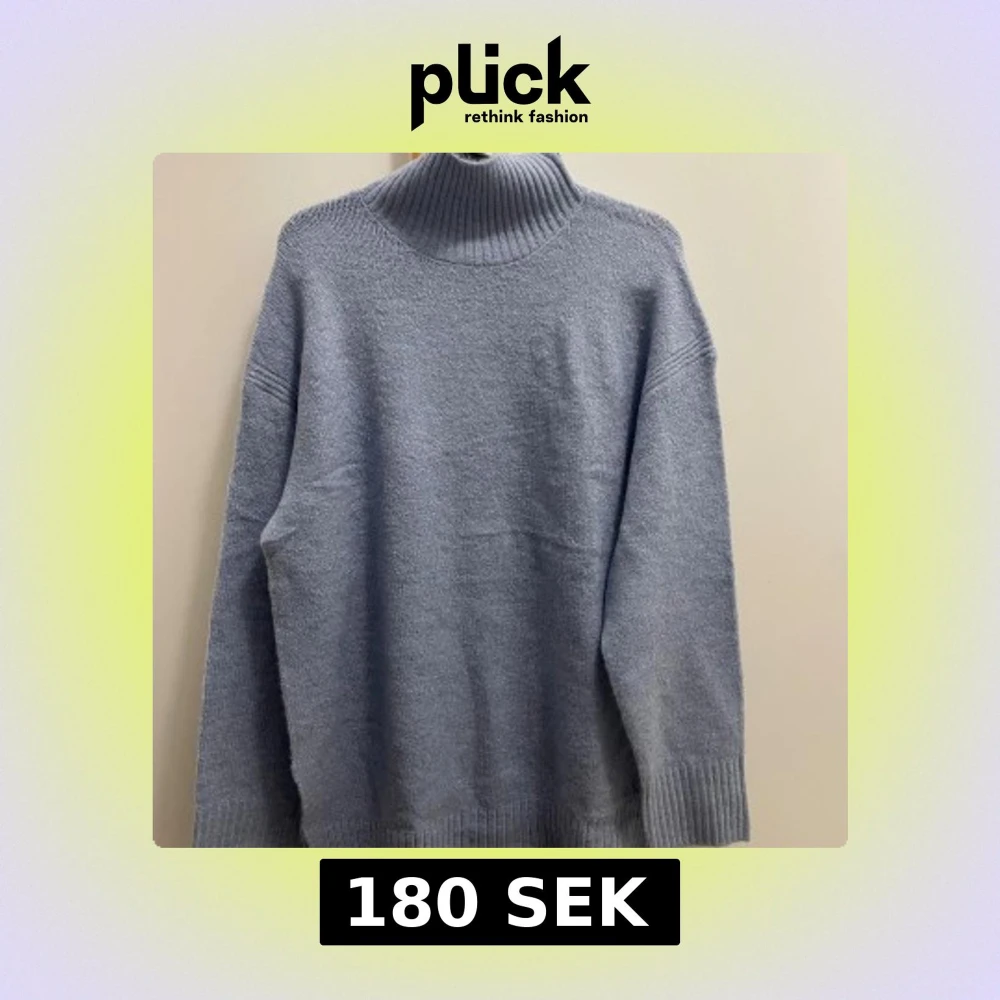 Aldrig använt!Pris kan diskuteras! Mysig ljusblå stickad tröja med hög ribbad krage och långa ärmar. Tröjan har en relaxed passform och snygga slitsar i sidorna för extra stilpoäng. Perfekt att slänga på sig när det är kyligt ute.