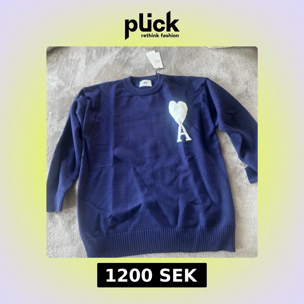 Säljer en snygg mörkblå tröja från Ami med ett vitt hjärta och bokstaven 'A' på bröstet. Tröjan har långa ärmar och en ribbad krage samt nederkant. Perfekt för en stilren look. Helt oanvänd då den är för stor för min son. Köpt i Paris, därav kan vi inte byta storlek. Så ny med prislapp på, självklart äkta! Dyr i inköp!