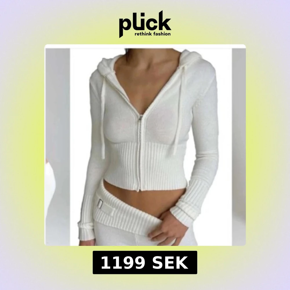 Säljer en stilren vit ribbad hoodie från Catania. Den har en dragkedja framtill och är croppad med långa ärmar. Perfekt för en avslappnad look. Byxorna ingår även vilket gör att det blir ett komplett sett aldrig använda 🖤