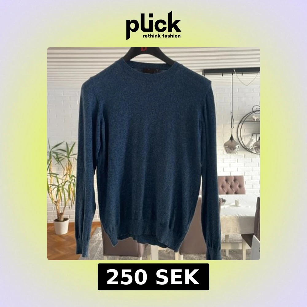 Säljer en stilren blå tröja från Oscar Jacobson. Tröjan är tillverkad i Italien och har en klassisk design med långa ärmar och rund hals. Perfekt för en elegant och avslappnad look.