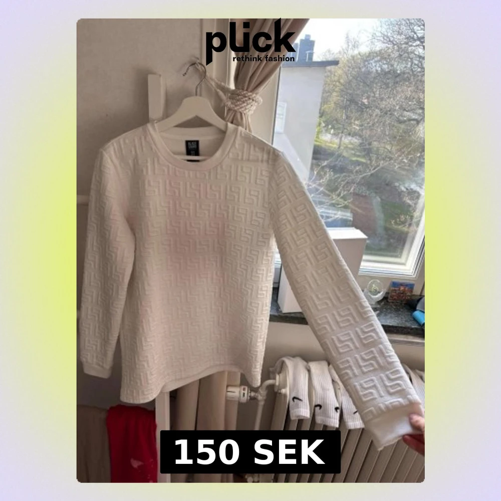 Säljer en vit sweatshirt från SIKSILK med upphöjt geometriskt mönster över hela tröjan. Tröjan har rund halsringning och långa ärmar. Perfekt för dig som gillar stilrena och moderna plagg med en twist.