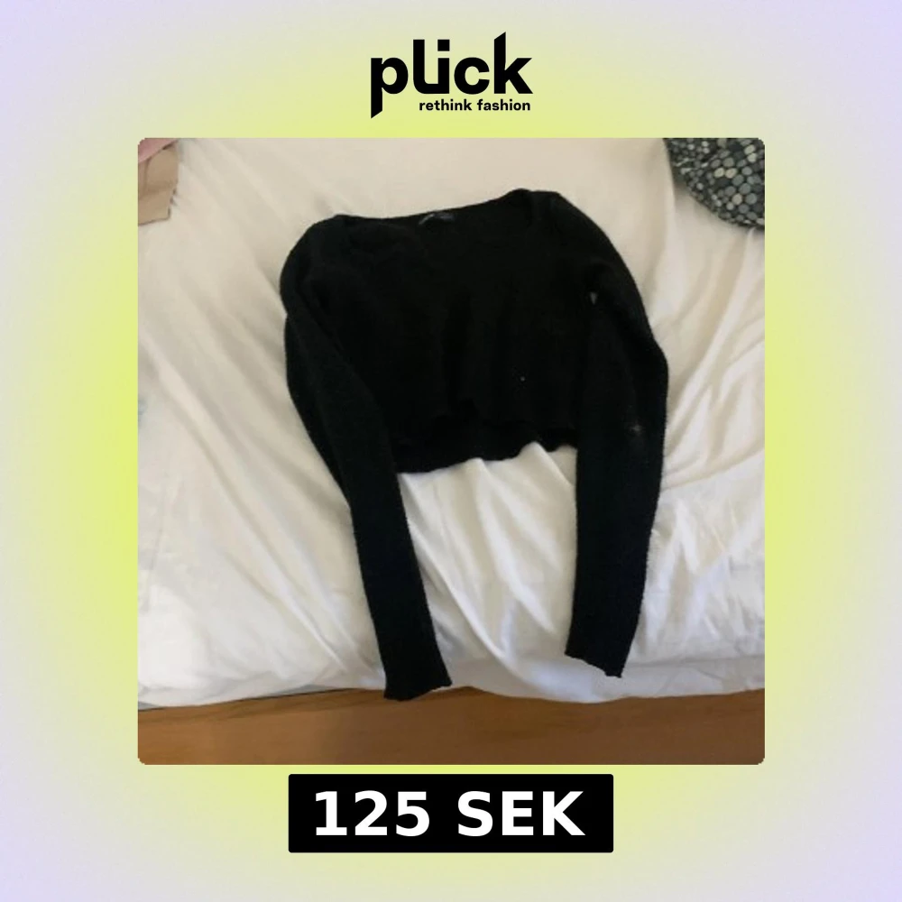 Svart croppad stickad tröja med lång ärm och rund hals. Tröjan har en loose fit och är perfekt att styla med höga jeans eller kjol. Mjuk och skön, passar dig som gillar en enkel men trendig look.