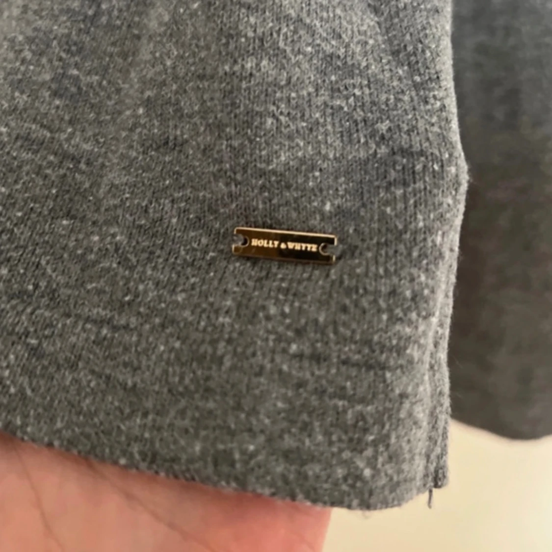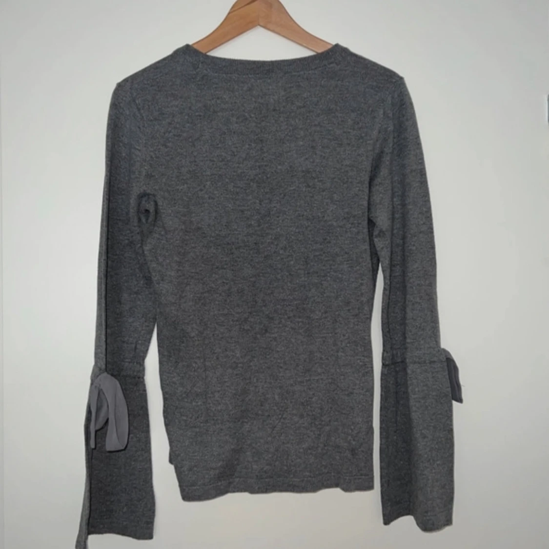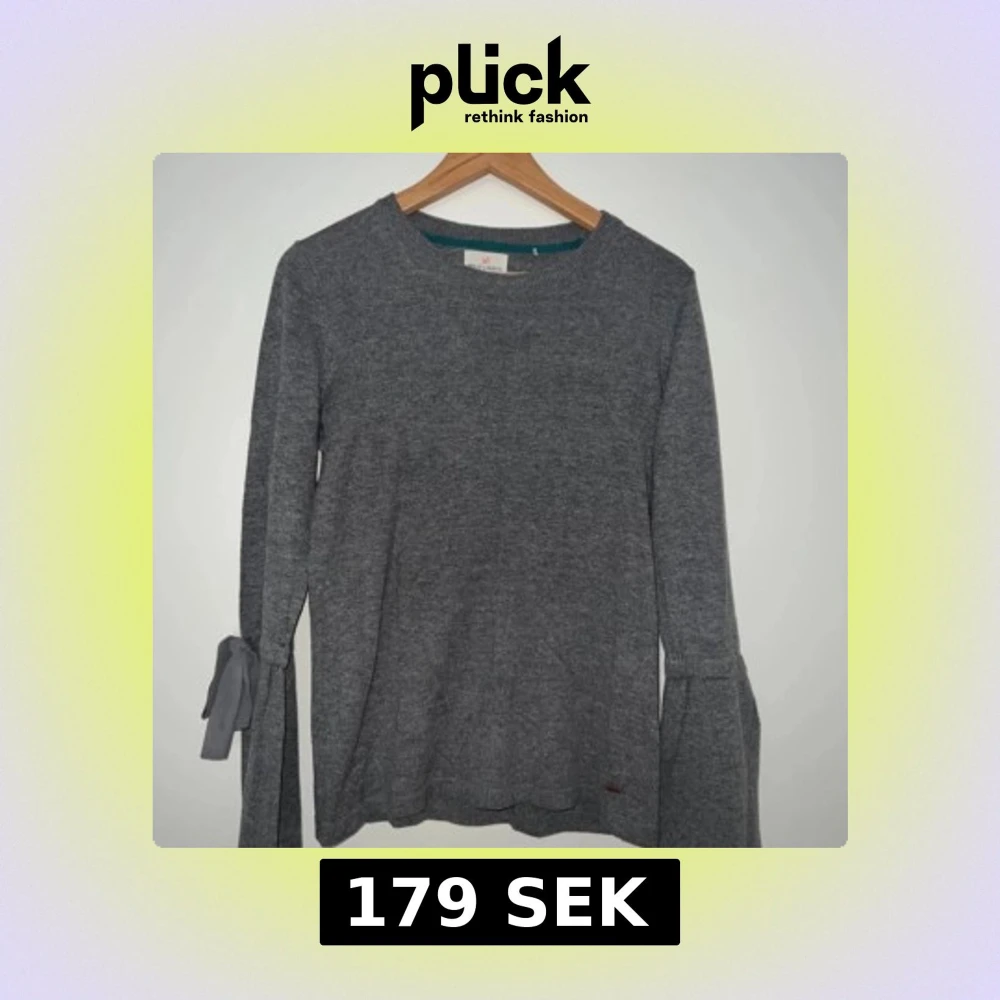 Mysig grå långärmad tröja från Holly & White med snygga knytband på ärmarna. Tröjan har en enkel rund halsringning och är tillverkad i mjukt material som passar perfekt till höst och vinter. Har aldrig använts. Stilren och lätt att matcha med det mesta. Tröjan material: Bomull och akryl.