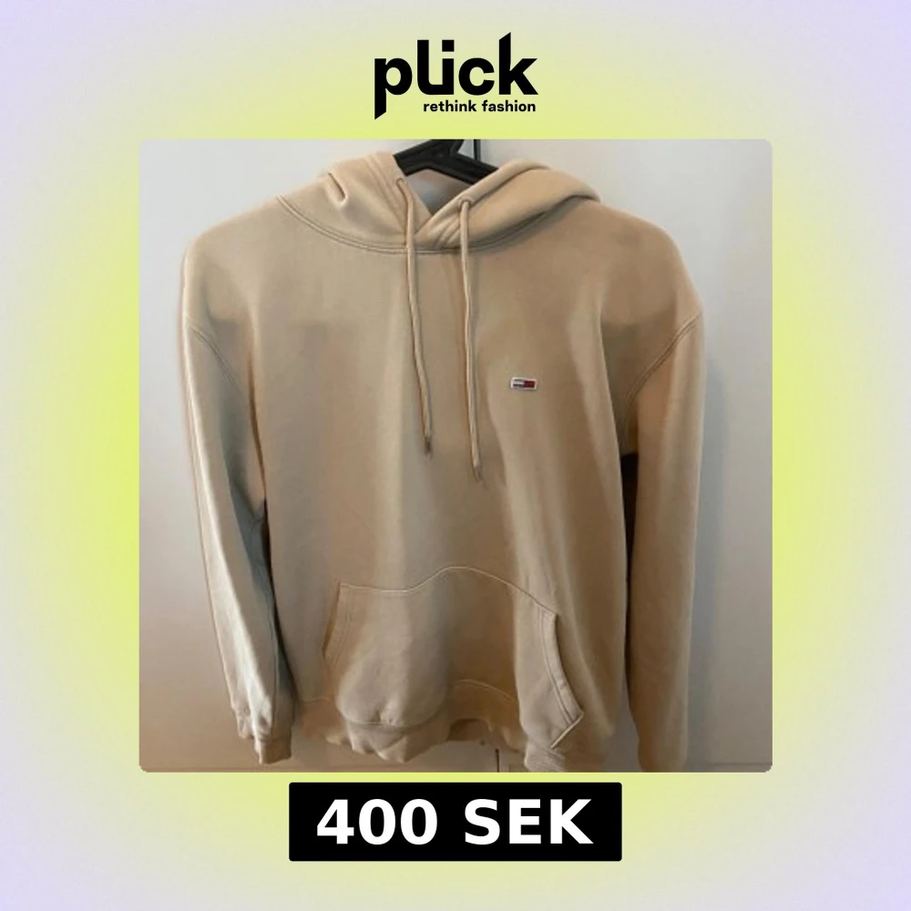 Snygg beige hoodie från Tommy Jeans med broderad logga på bröstet. Klassisk känguruficka, huva med snörning och ribbade muddar. Perfekt för dig som gillar en clean och stilren look. Tillverkad i mjuk bomull för extra komfort. Ny pris mellan 1000-1200