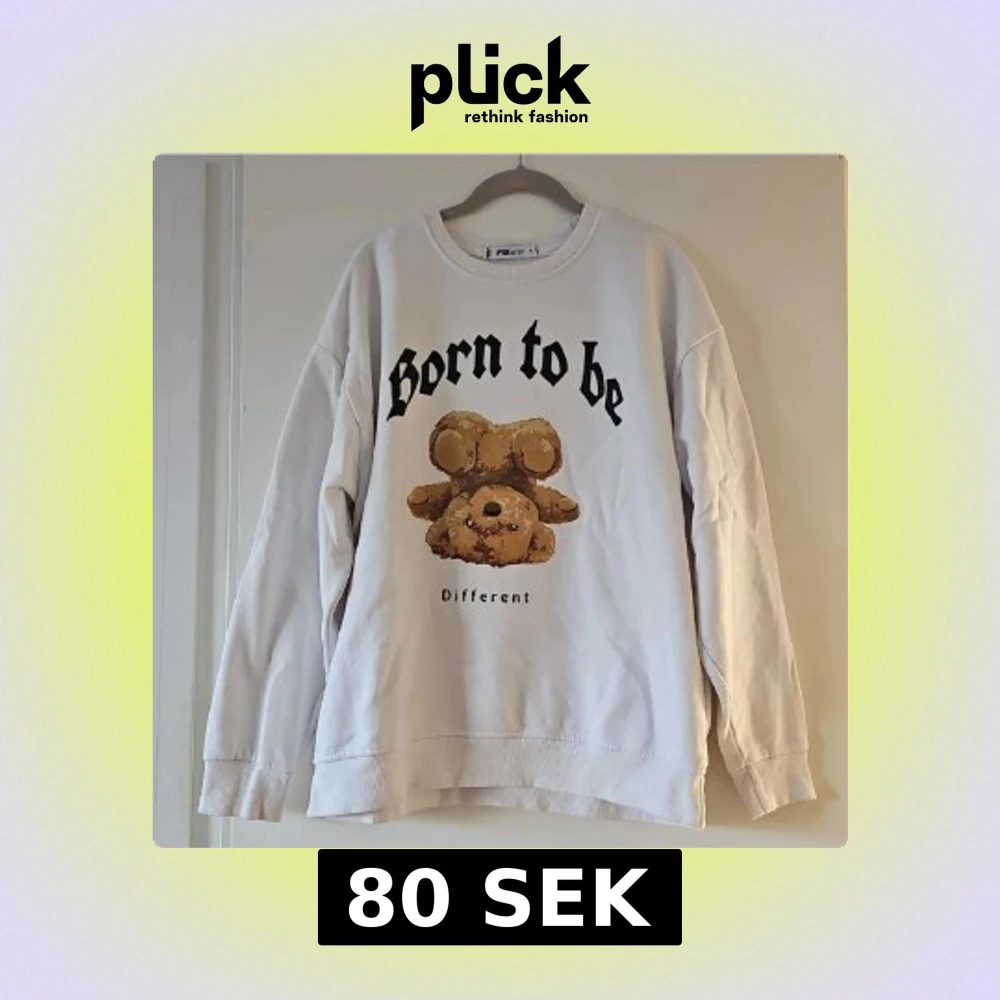 Vit sweatshirt från FB Sister med tryck av en söt nallebjörn och texten 'Born to be Different' på framsidan. Tröjan har rund hals, långa ärmar och en relaxed passform. Perfekt för dig som gillar unika och gulliga prints.