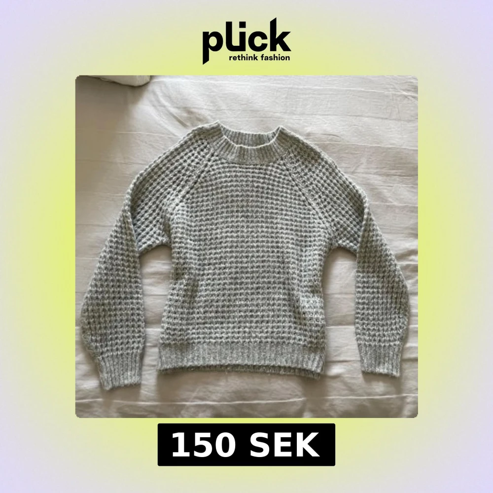 Säljer min supermysiga ljusgrå stickad tröja med grov struktur och ribbade muddar vid ärmslut, hals och nederkant. Den är i mycket bra skick och knappt använd