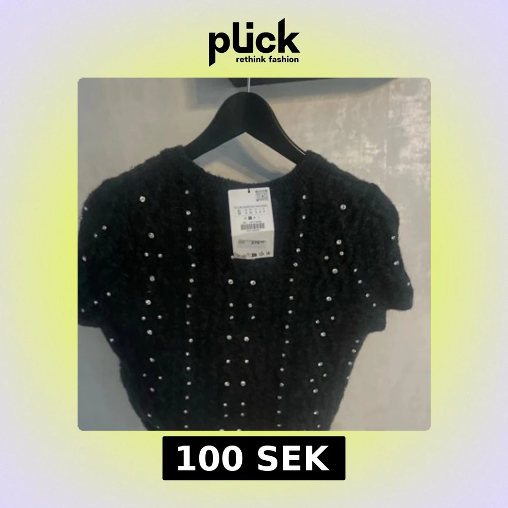 Snygg svart tröja dekorerad med pärlor som ger en elegant touch. Perfekt för att lyfta vilken outfit som helst. Kortärmad design som passar bra till både jeans och kjol.