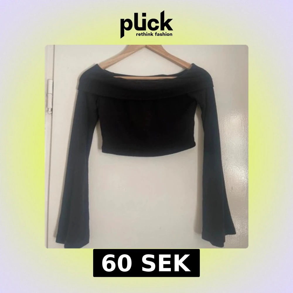 Snygg svart offshoulder topp med långa ärmar och croppad design. Perfekt för en stilren look.