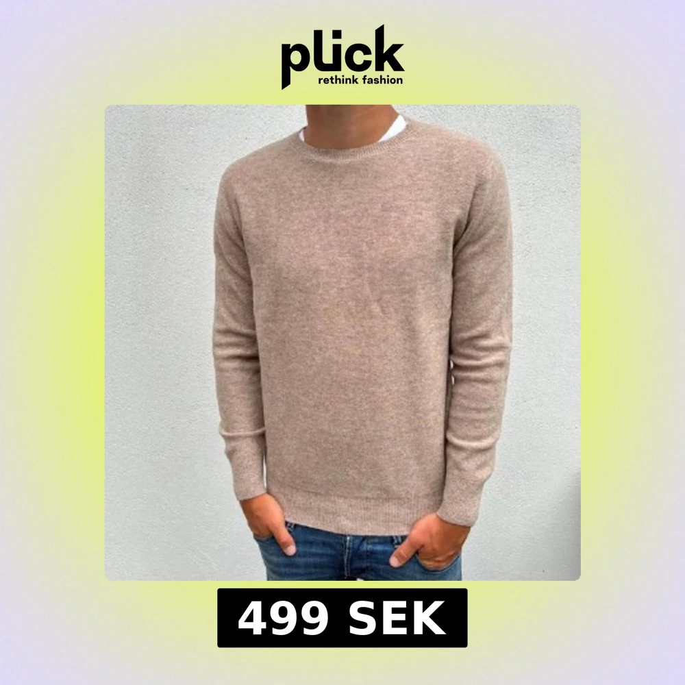 Säljer en stilren beige kashmirtröja med rund halsringning. Tröjan är långärmad och har en mjuk, lyxig känsla. Perfekt för dig som gillar en enkel och clean look. Passar snyggt till jeans eller chinos.