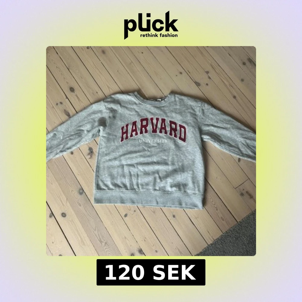 Grå sweatshirt med klassiskt Harvard-tryck i vinrött och vitt på bröstet. Tröjan har rund hals, långa ärmar och ribbade muddar. Perfekt för dig som gillar mysiga tröjor!