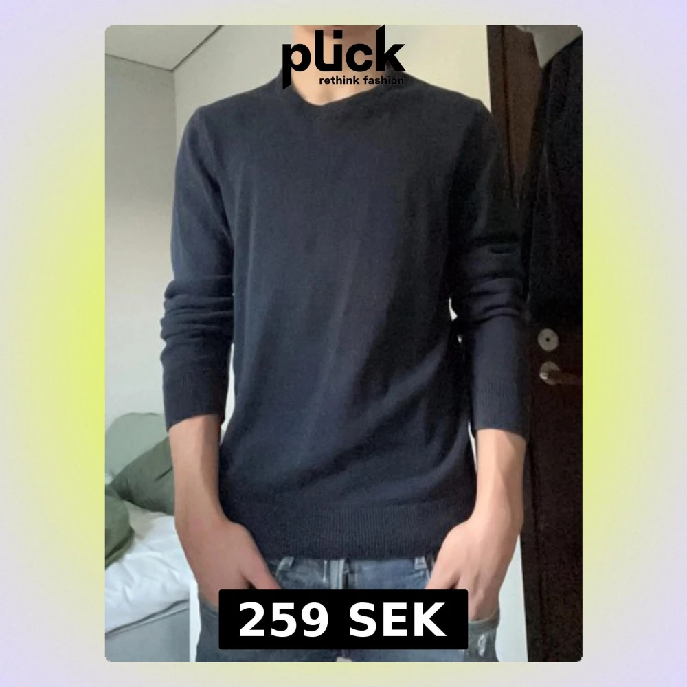 En stilren mörkblå tröja med rund halsringning och långa ärmar. Tröjan har ribbade muddar vid ärmslut och nederkant, vilket ger en snygg passform. Perfekt för lager-på-lager och enkel att matcha med jeans eller chinos.
