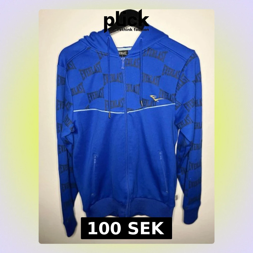 Blå Everlast hoodie med dragkedja i mycket bra skick, pm vid intresse.