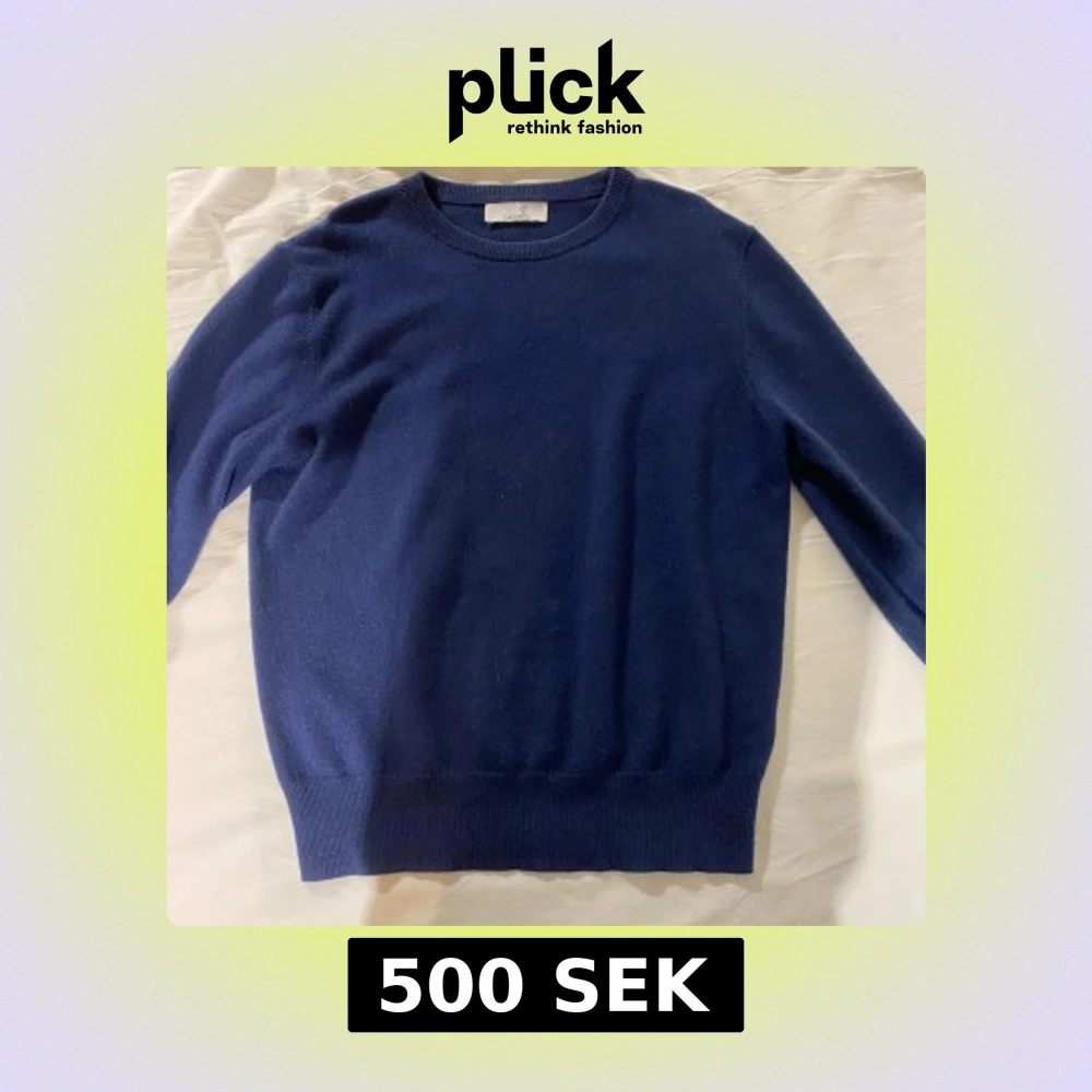 Säljer en klassisk mörkblå rundhalsad tröja från Carmes i mjuk kashmir. Tröjan har långa ärmar och ribbade muddar vid ärmslut, hals och nederkant. Perfekt för lager-på-lager och stilrena outfits.