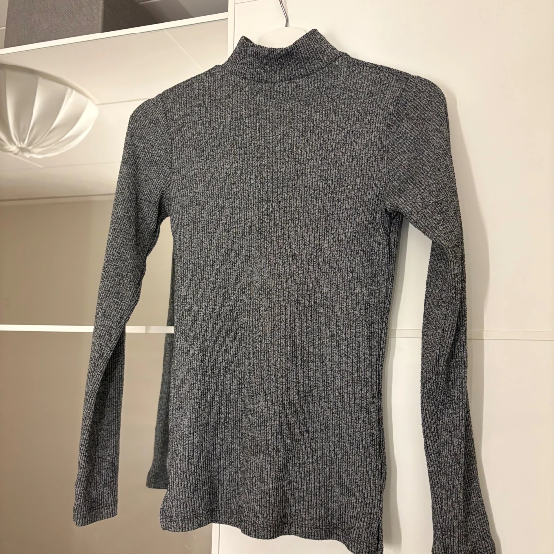 Snygg grå ribbad polotröja. Hör av er vid funderingar eller om ni vill ha bilder med hur plagget sitter på mig. Titta gärna in mina andra plagg!