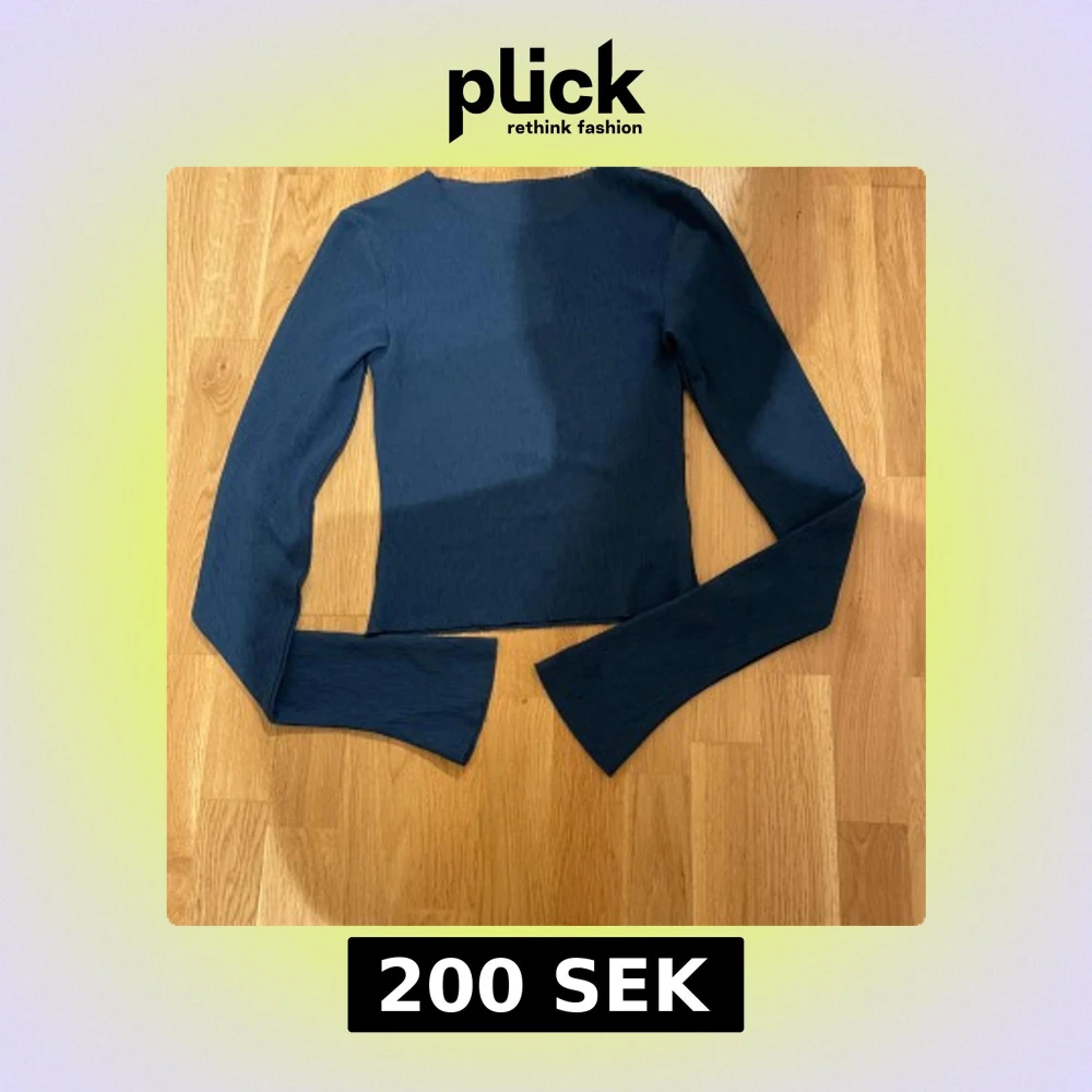 Snygg mörkblå ribbad tröja med långärmad design. Perfekt för en stilren look. Passar bra till både jeans och kjol.