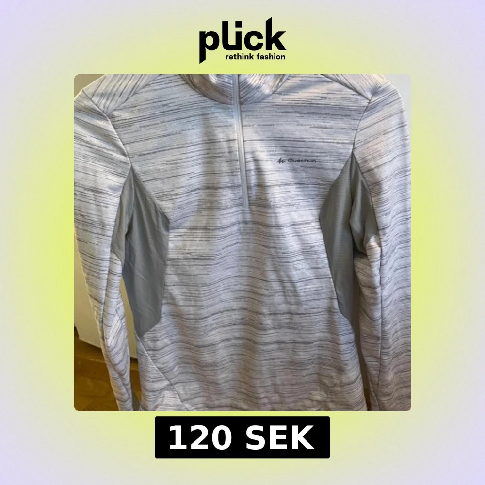 Säljer en grå randig tröja från Quechua (Decathlon)med halv dragkedja framtill. Perfekt för kyliga dagar med sin långärmade design och bekväma passform. Tillverkad i ett mjukt material som håller dig varm och bekväm.
