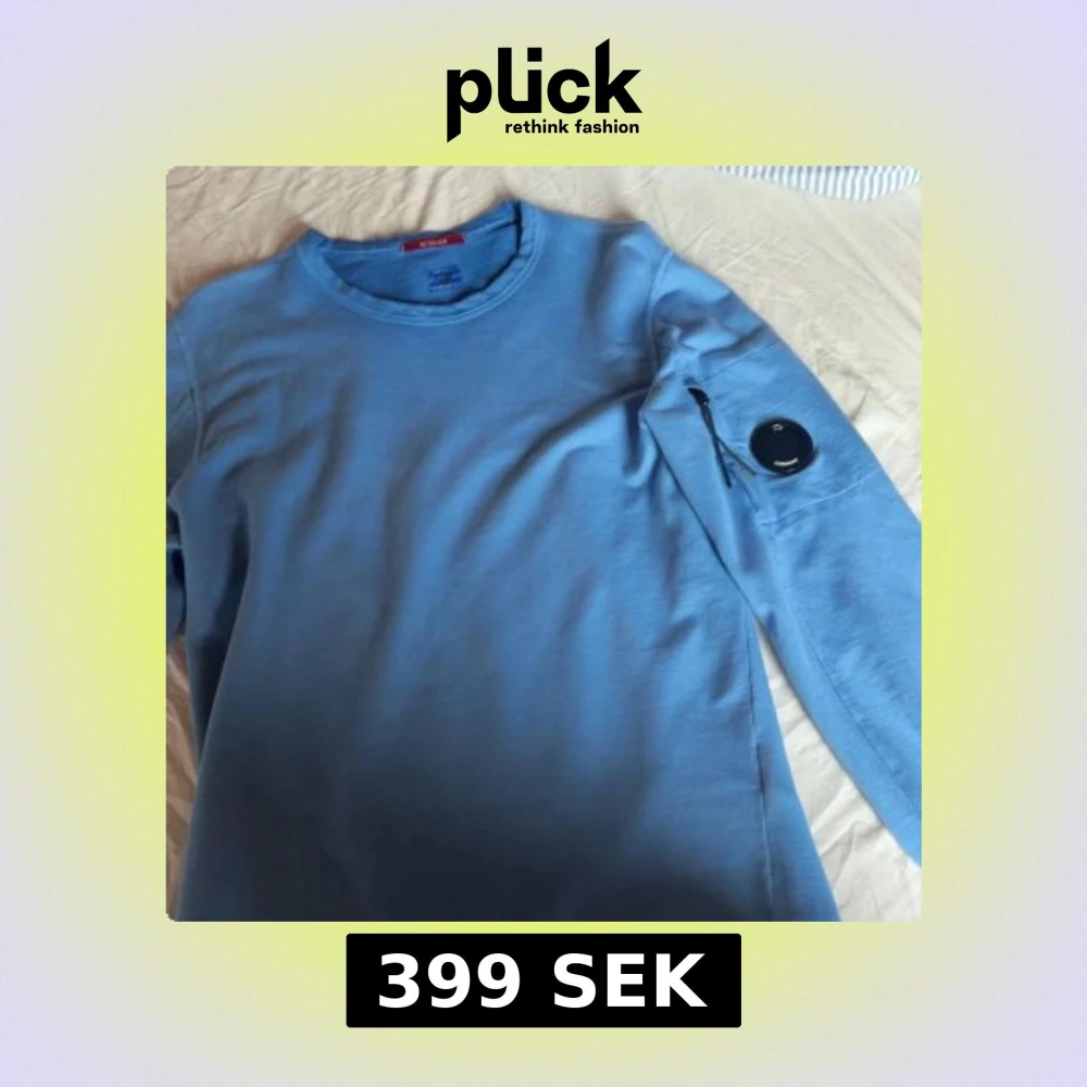 Säljer en snygg blå långärmad tröja från C.P. Company. Tröjan har en unik detalj med en rund logotyp på ärmen och är tillverkad i ett mjukt material. Perfekt för en stilren look. Pris kan diskuteras!