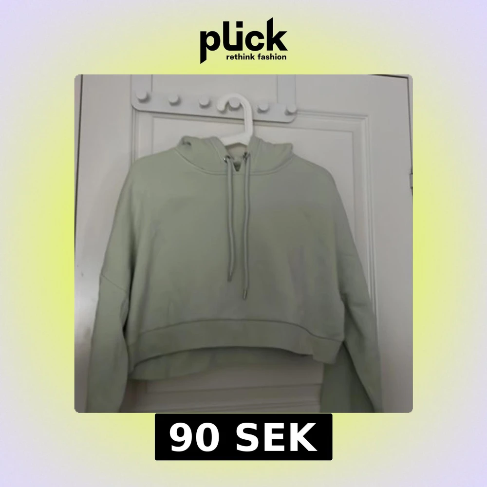 Säljer en ljusgrön croppad hoodie med huva och dragsko. Tröjan har långa ärmar och en avslappnad passform, perfekt för en chill vardagslook. Supermjuk och skön att ha på sig! Storlek S
