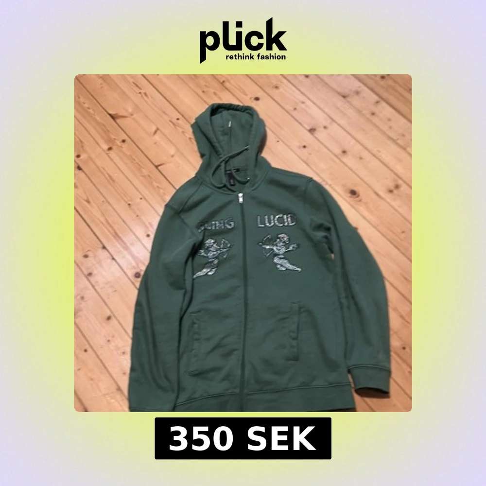 Snygg grön hoodie från Blinglucid med dragkedja och huva. Den har coola detaljer med text och motiv på framsidan. Perfekt för en avslappnad stil. Kan gå ner i pris
