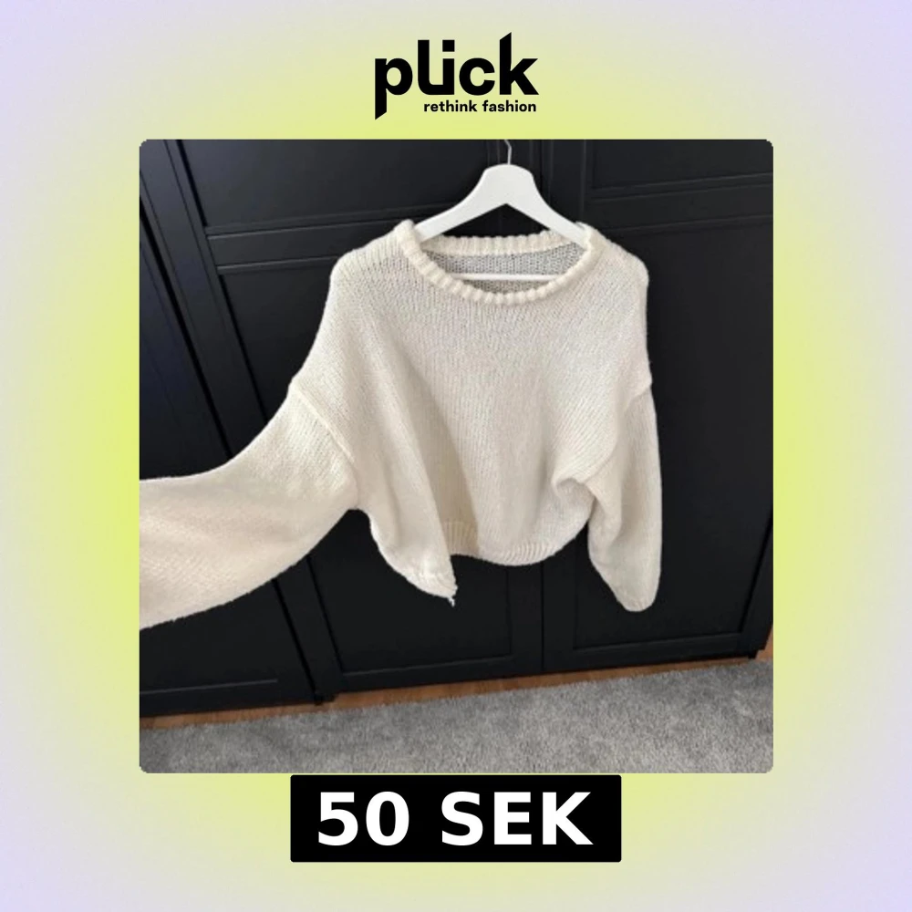 Säljer en mysig vit stickad tröja med en lös passform. Tröjan har långa ärmar och en rund halsringning med ribbade detaljer. Perfekt för kyliga dagar! Kontakta gärna för fler bilder med tröjan på 💕🌸