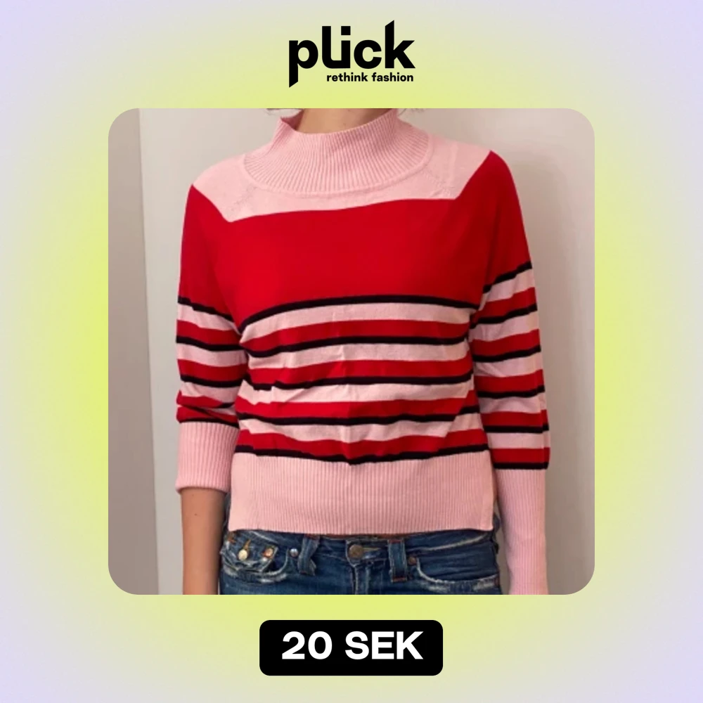 Säljer en superfin randig tröja i rött och rosa. Den har en hög krage och långa ärmar, perfekt för höst och vinter. Tröjan är i bra skick och passar både till vardags och lite finare tillfällen. Skön och stilren, ett måste i garderoben! 💖