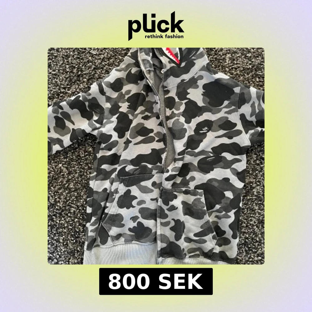 Säljer en full zip grå/svart BAPE hoodie med klassisk camo stil. Använt ett fåtal gånger och säljer pga att de inte är min stil längre.
