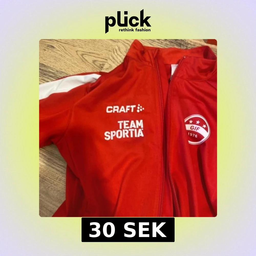 Röd träningsjacka från Craft med GIF 1976-logga och Team Sportia-tryck. Jackan har hel dragkedja, ståkrage och vita detaljer på axlarna. Perfekt för dig som gillar sportig stil och vill sticka ut på träningen.