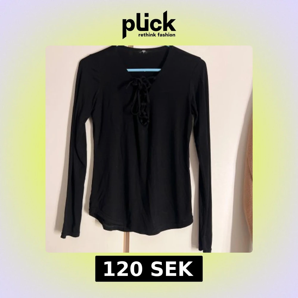 Svart långärmad topp med v-ringning och snygg snörningsdetalj framtill. Modellen är figurnära och enkel, perfekt att styla med jeans eller kjol. Mjukt och stretchigt material som känns skönt mot huden.