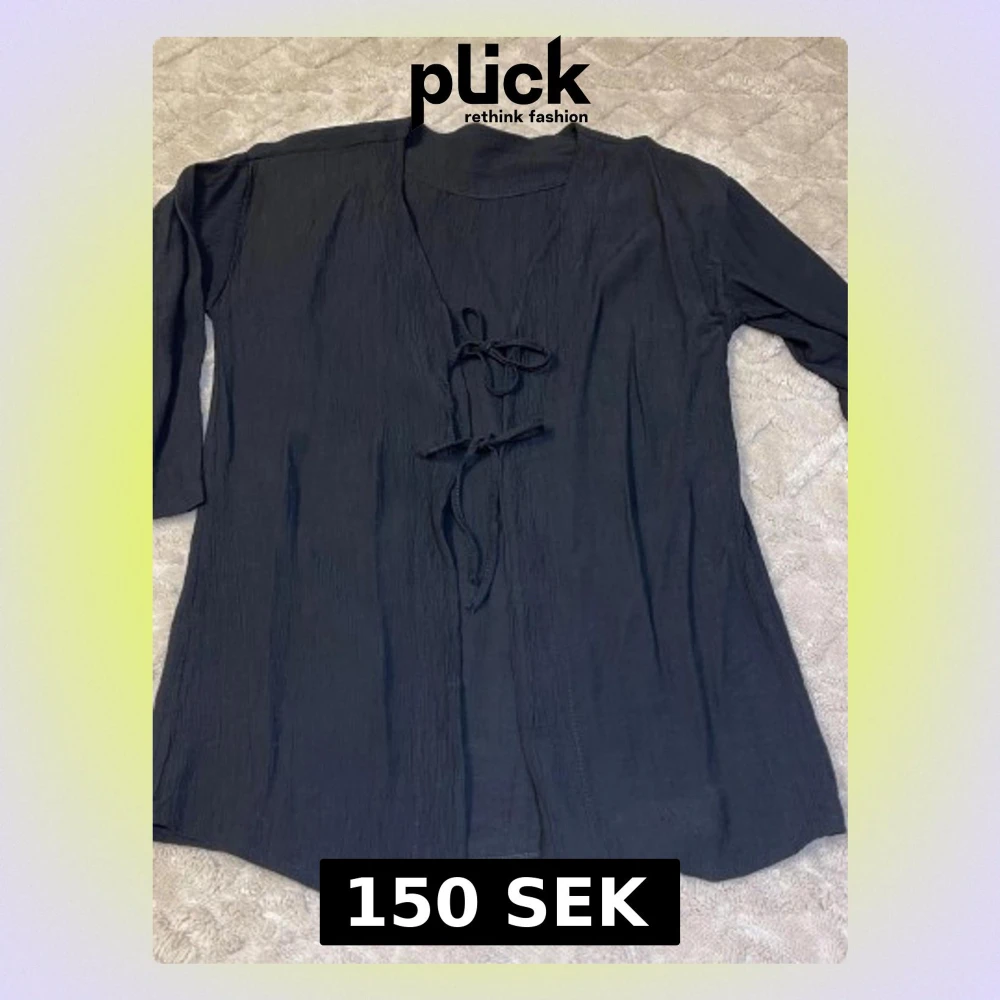 Svart, tunn och luftig kofta med lång ärm och två knytband framtill. Materialet är lätt skrynklat och känns mjukt mot huden, perfekt att slänga över en t-shirt eller linne. Enkel och stilren design som funkar till många olika outfits.