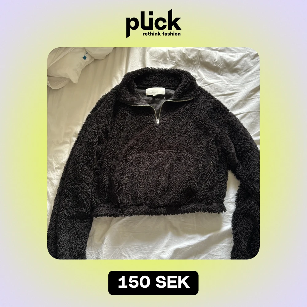 Mysig svart fleece hoodie från NLY Trend i mycket bra skick. Den har en halv dragkedja och en stor ficka framtill. Perfekt för kyliga höst- och vinterdagar. Storleken S 🖤