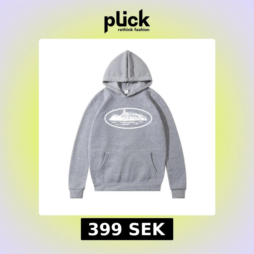 Säljer en grå hoodie med vit tryckt grafik på bröstet. Tröjan har huva, magficka och långa ärmar med ribbade muddar. Perfekt för chill dagar och streetwear-stil. Materialet är mjuk bomull och polyesterblandning som känns skönt mot huden.