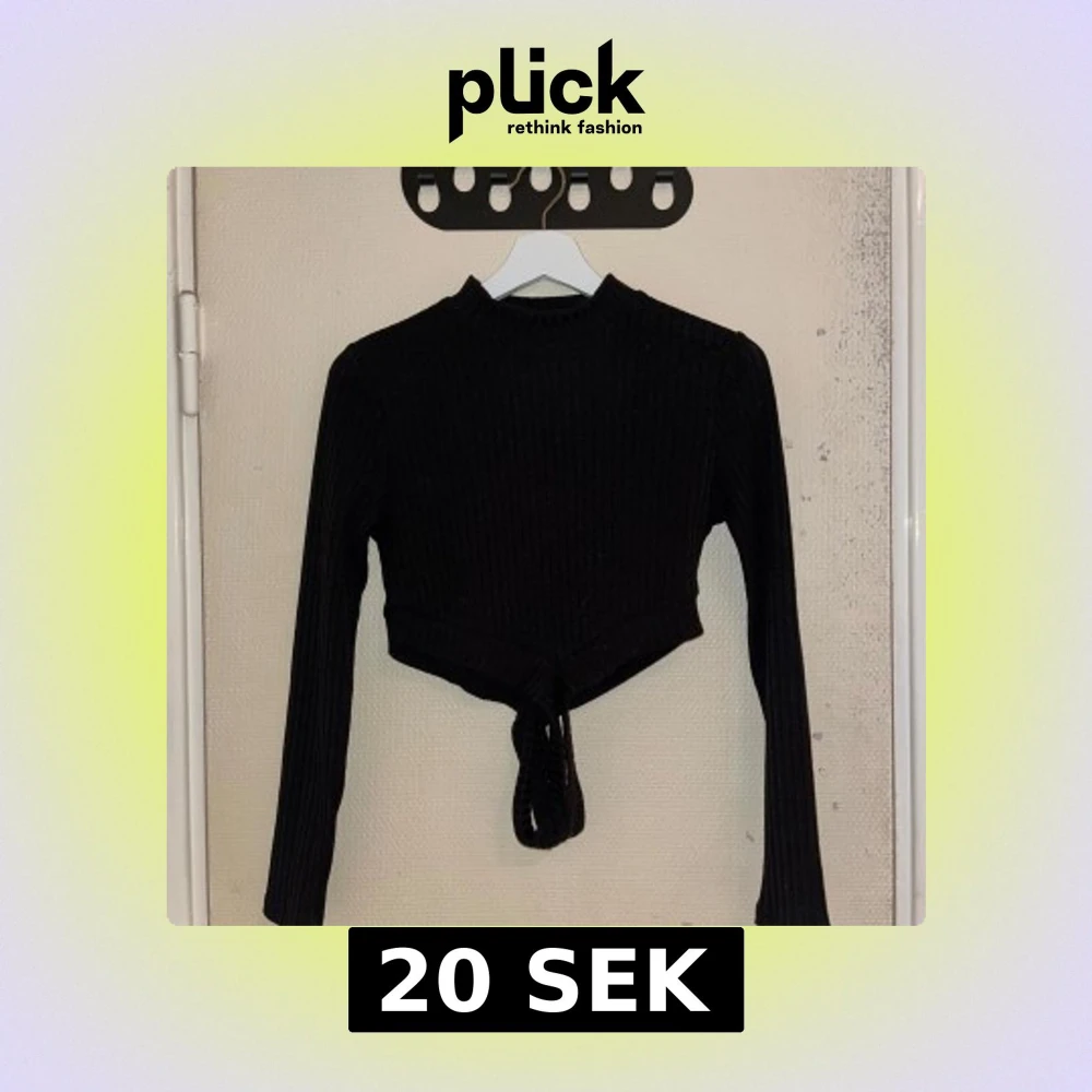 Säljer en svart ribbad topp från Shein med långa ärmar, det blir ett kors på magen med banden nertill. Perfekt för en stilren look. 🖤