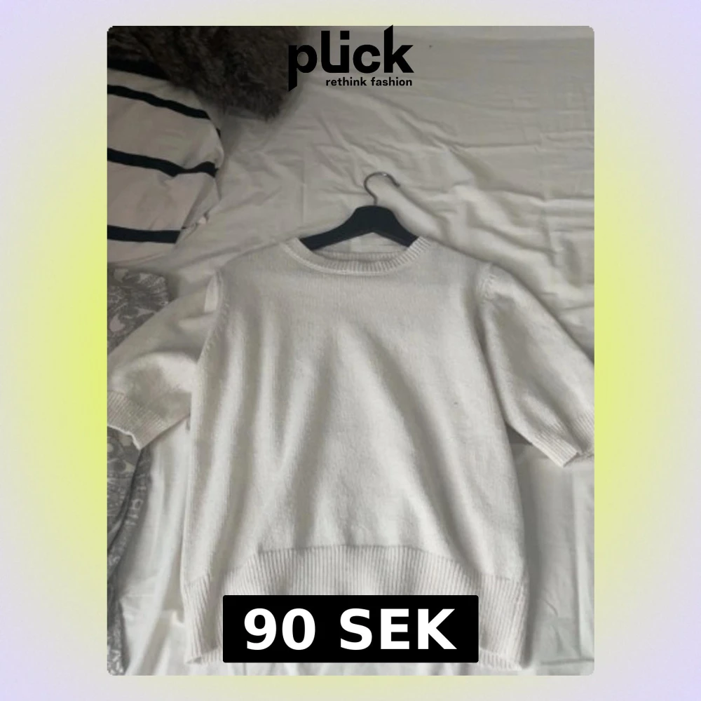 Säljer en vit stickad tröja från Dazy i storlek S. Tröjan har rund hals, ribbade muddar och korta ärmar. Perfekt för lager-på-lager och passar dig som gillar enkel och clean stil💕💕