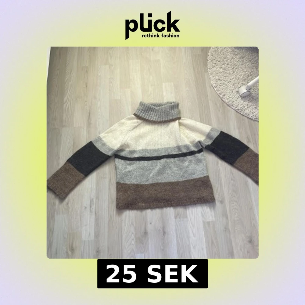Supermysig stickad polotröja från Jacqueline de Yong i storlek S. Tröjan har breda ränder i beige, grått, brunt, svart och vitt. Den har lång ärm och en hög, ribbad polokrage. Perfekt för kalla dagar när du vill vara både varm och snygg.