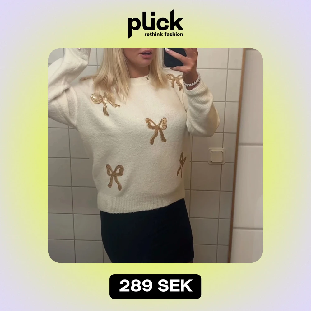 Superfin vit tröja med glittriga rosetter i guld. Perfekt för att liva upp en vardagsoutfit eller till fest. Den är långärmad och ser riktigt mysig ut. Passar bra till både kjol och jeans. Ett måste i garderoben för den som älskar detaljer! ✨