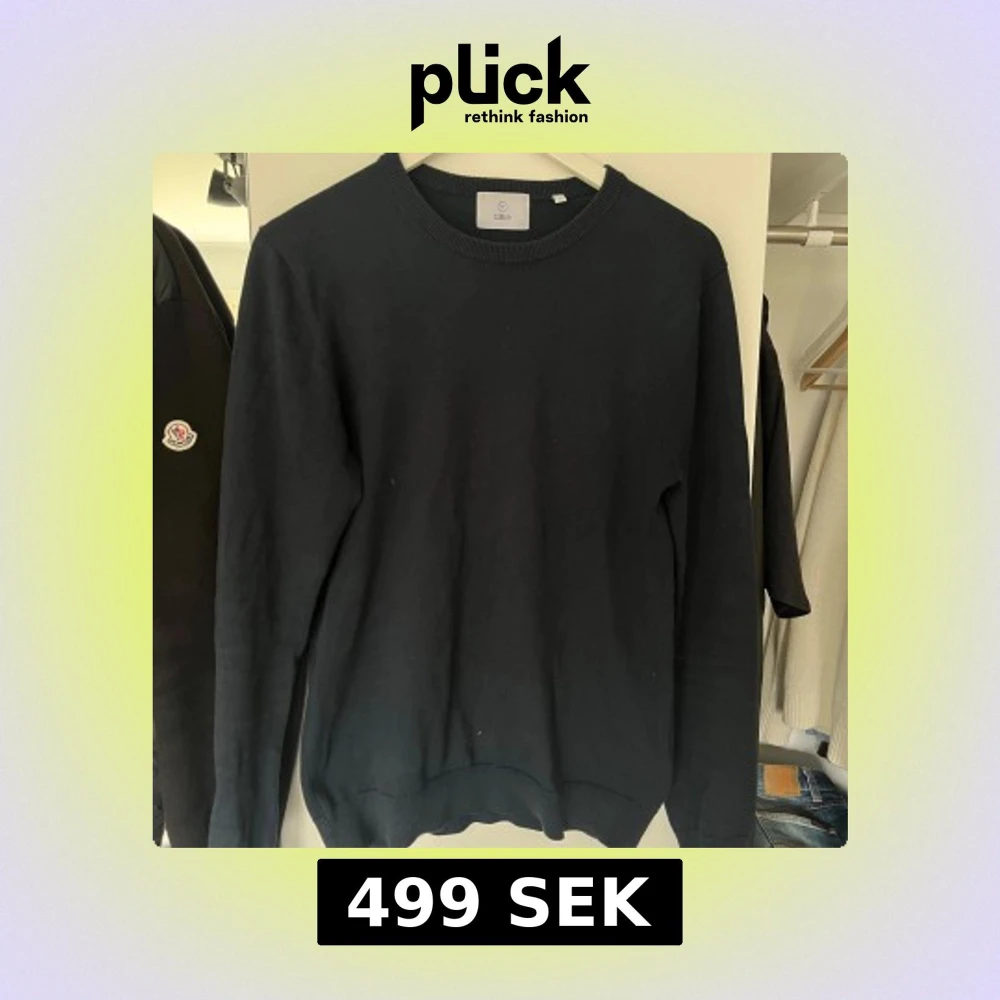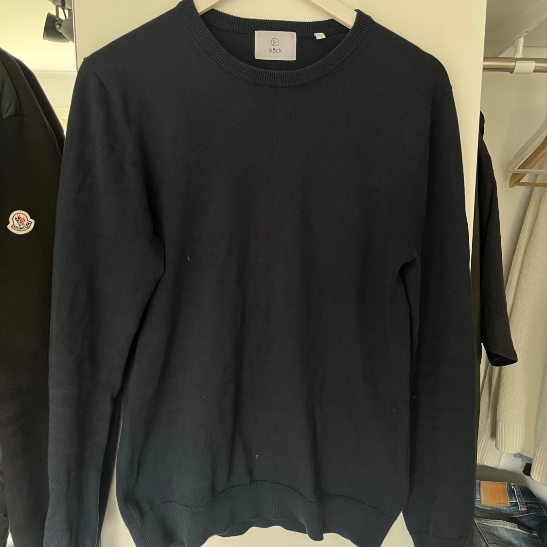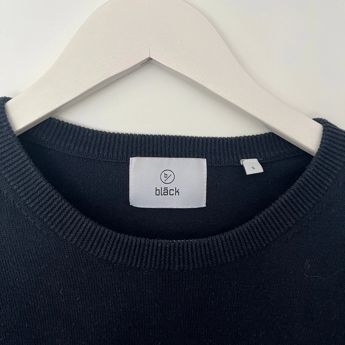En stilren mörkblå tröja från Bläck i storlek S. Tröjan har rund halsringning, ribbade muddar och är långärmad. Perfekt att matcha med jeans eller under en väst m.m för en clean look. (Se sista bilden för outfit inspiration) pris kan diskuteras