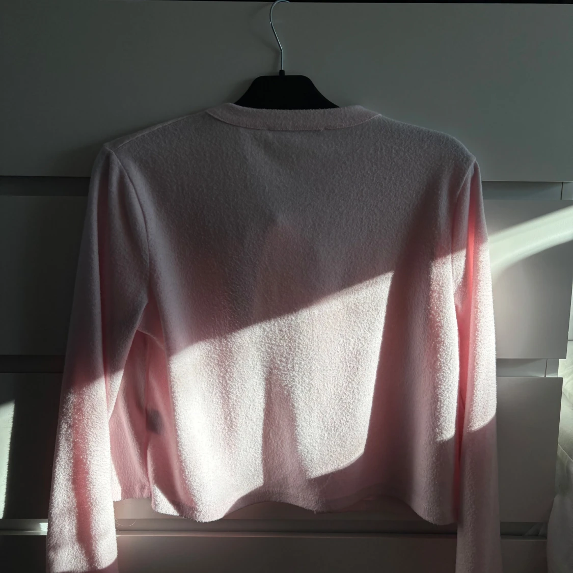 Säljer en söt rosa kofta med en dekorativ rosett framtill. Koftan har långa ärmar och är tillverkad i ett mjukt material. Perfekt för en stilren och feminin look. Hör av dig vid intresse! 💖