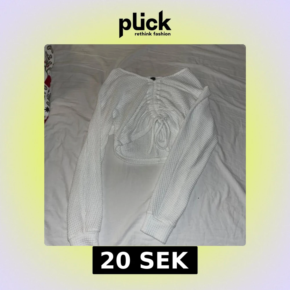 Säljer en vit stickad tröja från Shein med snörning framtill. Tröjan har långa ärmar och en croppad passform.