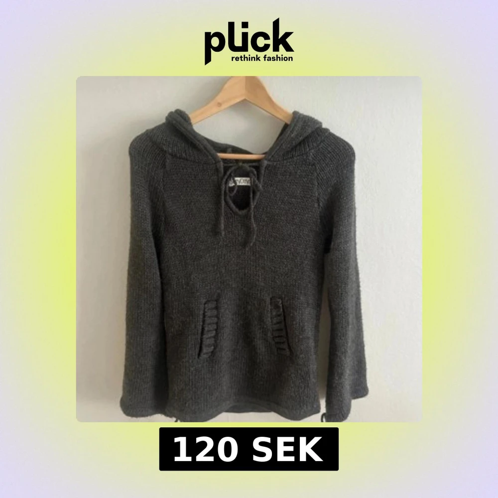 Mysig mörkgrå stickad hoodie från SixtyDays med luva. Den är köpt secondhand o hittar ingen storlek med skulle säga att det är som en S🤍