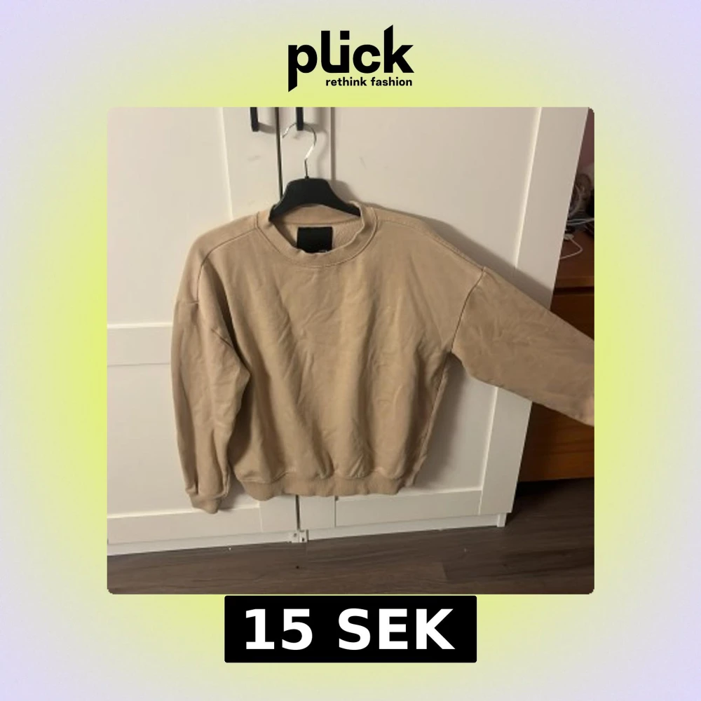 Säljer en beige sweatshirt från 157. Tröjan har en klassisk rund hals och långa ärmar. Materialet känns mjukt och bekvämt mot huden.