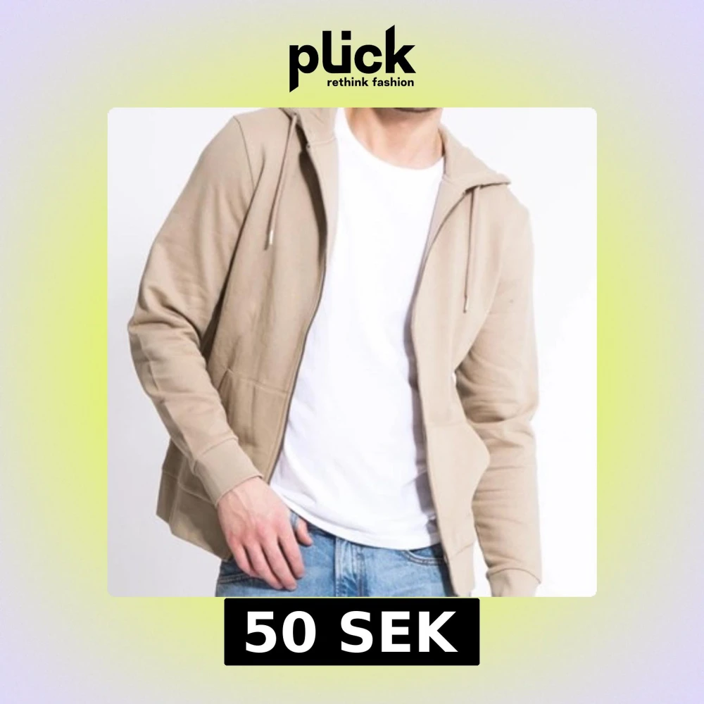 Snygg beige hoodie med dragkedja och huva. Perfekt för en avslappnad stil. Den har långa ärmar och en bekväm passform.