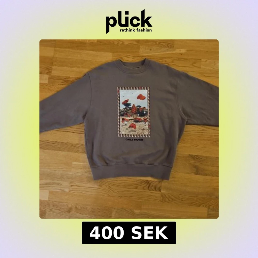 Säljer en grå sweatshirt från Daily Paper med ett unikt tryck på framsidan. Tröjan har långa ärmar och en bekväm passform.