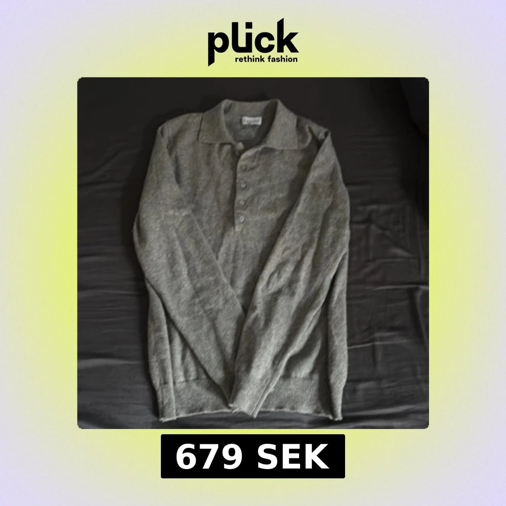 Säljer en stilren grå långärmad pikétröja med knappar framtill. Perfekt för en avslappnad men ändå snygg look. Tröjan har en klassisk krage och ribbade muddar vid ärmslut och nederkant. 100% cashmere