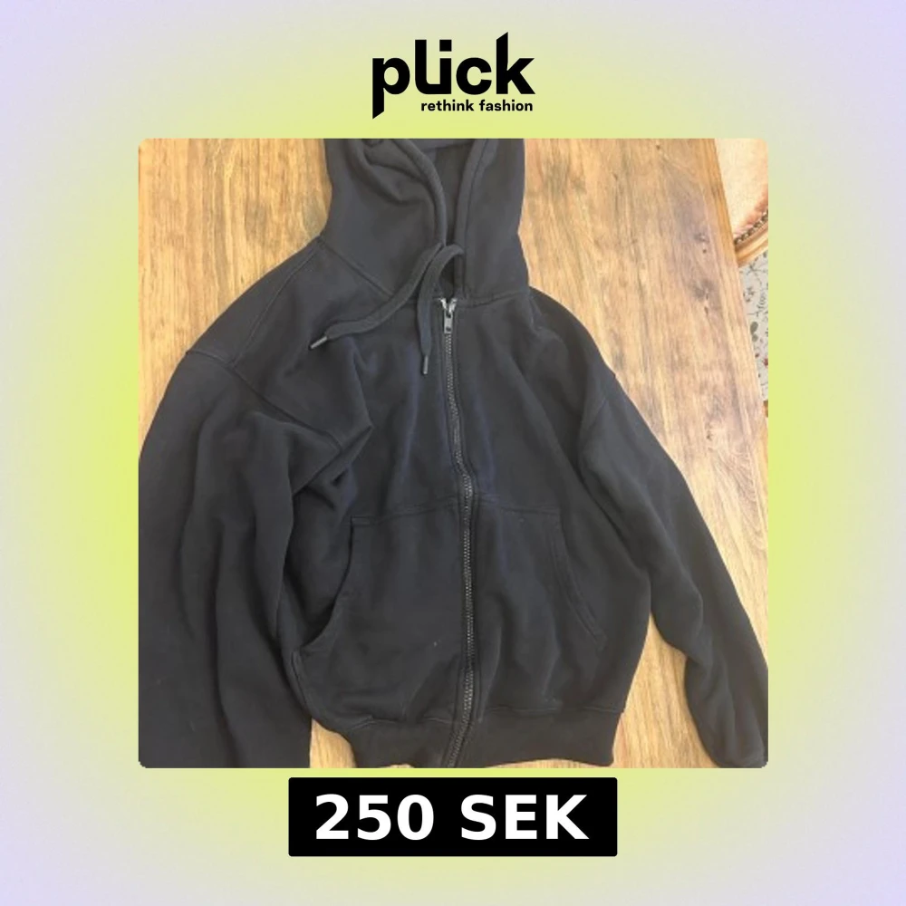 Säljer en svart hoodie med dragkedja och huva. Tröjan har två fickor framtill, Perfekt för en avslappnad stil den är väldigt skön att ha på sig.