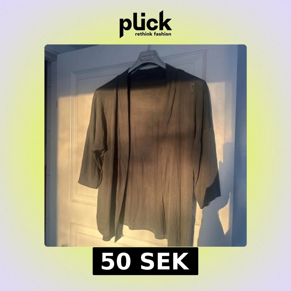 Snygg och tunn grön kofta från Everyday Hero i storlek S. Koftan har öppen front, trekvartsärm och är gjord i mjuk viskos. Perfekt att slänga över en t-shirt för en chill look. Enkel design utan knappar eller dragkedja.